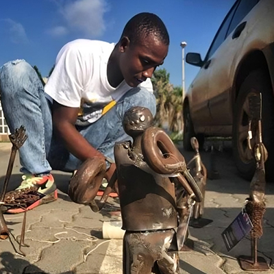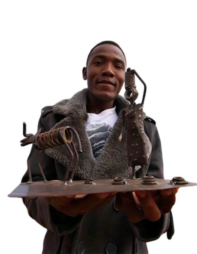 Pilato Bulala's Artistry is the creative sanctuary of Pilato Bulala, an ingenious sculptor based in northern Limpopo, South Africa. Pilato's journey began with crafting wire toy cars, evolving into magnificent "scraptures" – scrap metal sculptures that narrate the rich tapestry of South African history and culture. Despite adversity, Pilato's resilience and passion for his craft shine through in every piece, transforming discarded metal into captivating artworks.